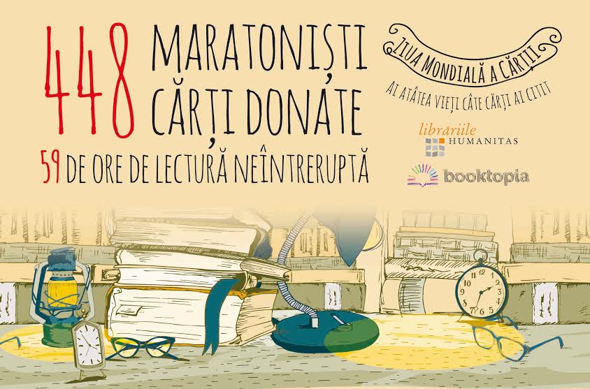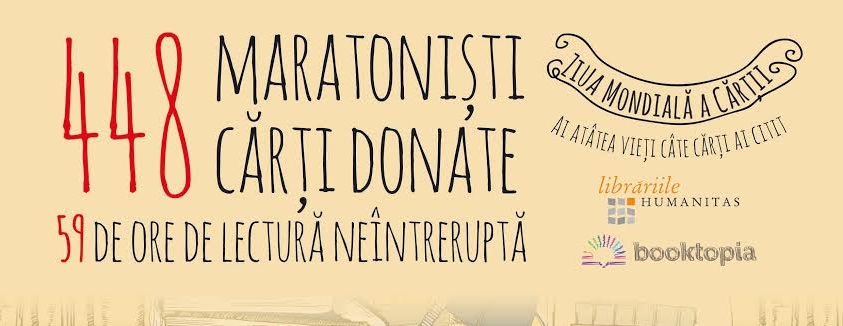 Ieri, 23 aprilie 2015, de Ziua Mondială a Cărţii, Librăriile Humanitas și rețeaua Booktopia.ro au organizat „Maratonul de citit” pentru a bate recordul de 44 de ore de lectură neîntreruptă. Curtea Veche Publishing s-a alăturat acestei inițative, fiind una dintre editurile partenere.
