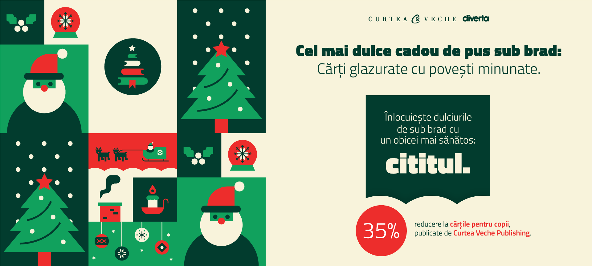 Cam acestea ar fi câteva dintre motivele care fac cititul cu copilul tău cel mai bun cadou de Crăciun. Te-am convins? Dacă da, Curtea Veche Publishing a creat o colecție specială de cărți pentru copii care de-abia așteaptă să fie despachetate de cei mici în dimineața de Crăciun. Vezi întreaga colecție pe site și până pe 24 decembrie profită de o reducere de 35% pe baza codului de reducere ALESEDEMOSUL. În plus, găsește-ne în librăriile Diverta, avem și acolo surprize pentru tine!