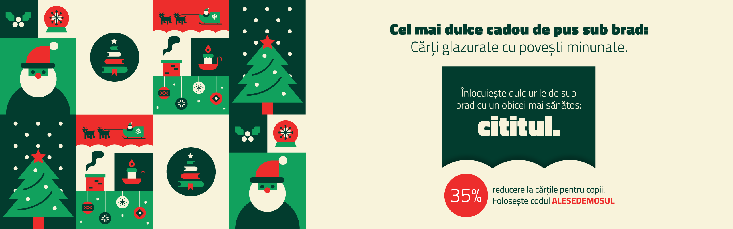 Cam acestea ar fi câteva dintre motivele care fac cititul cu copilul tău cel mai bun cadou de Crăciun. Te-am convins? Dacă da, Curtea Veche Publishing a creat o colecție specială de cărți pentru copii care de-abia așteaptă să fie despachetate de cei mici în dimineața de Crăciun. Vezi întreaga colecție pe site și până pe 24 decembrie profită de o reducere de 35% pe baza codului de reducere ALESEDEMOSUL. În plus, găsește-ne în librăriile Diverta, avem și acolo surprize pentru tine!