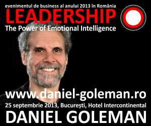 Participând la evenimentul Leadership – Puterea Inteligenței Emoționale, susținut de Daniel Goleman vă veți spori eficacitatea ca lideri și veți înțelege cum funcționează inteligența emoțională in relațiile organizaționale si interumane. Va puteți rezerva locul prin completarea formularului de înregistrare aici: http://goleman.traininguri.ro/inscriere/