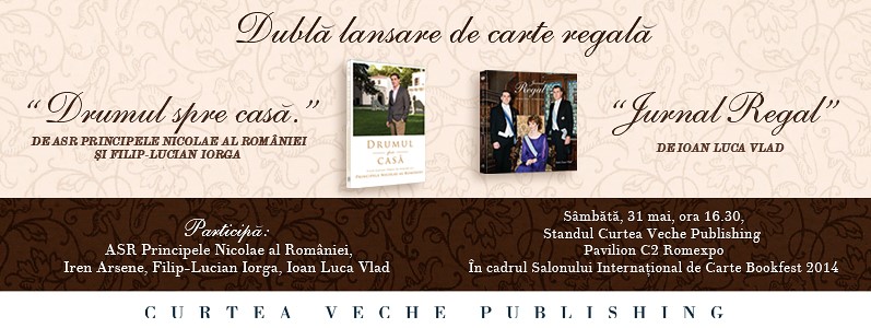 Curtea Veche Publishing vă invită la Salonul Internațional de Carte Bookfest 2014, la o dublă lansare de carte regală, în prezența ASR Principele Nicolae al României. Sâmbătă, 31 mai 2014, la ora 16.30, va avea loc lansarea volumelor “Jurnal Regal” de Ioan Luca Vlad și  “Drumul spre casă” de ASR Principele Nicolae al României și Filip Lucian Iorga.