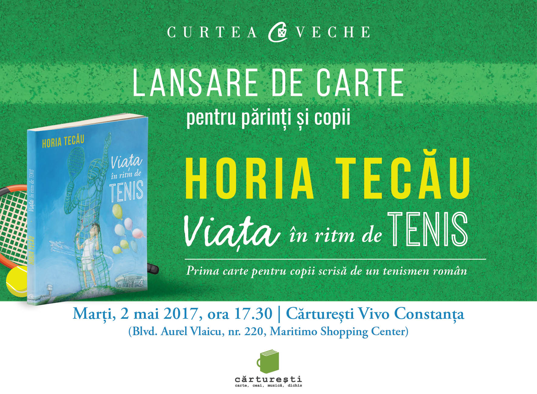 Celebrul tenismen Horia Tecău își va lansa cartea pentru copii în orașul natal în prezența unora dintre cei mai cunoscuți sportivi români – Cătălina Ponor, Elena Frîncu și Răzvan Florea. Curtea Veche Publishing și Librăria Cărturești Vivo Constanța îi invită marți, 2 mai 2017, deopotrivă pe cei mici și pe cei mari, la evenimentul de lansare a cărții “Viața în ritm de tenis”, carte în care Horia Tecău arată de ce este important să ne descoperim și să ne urmăm pasiunea încă de la cea mai fragedă vârstă.