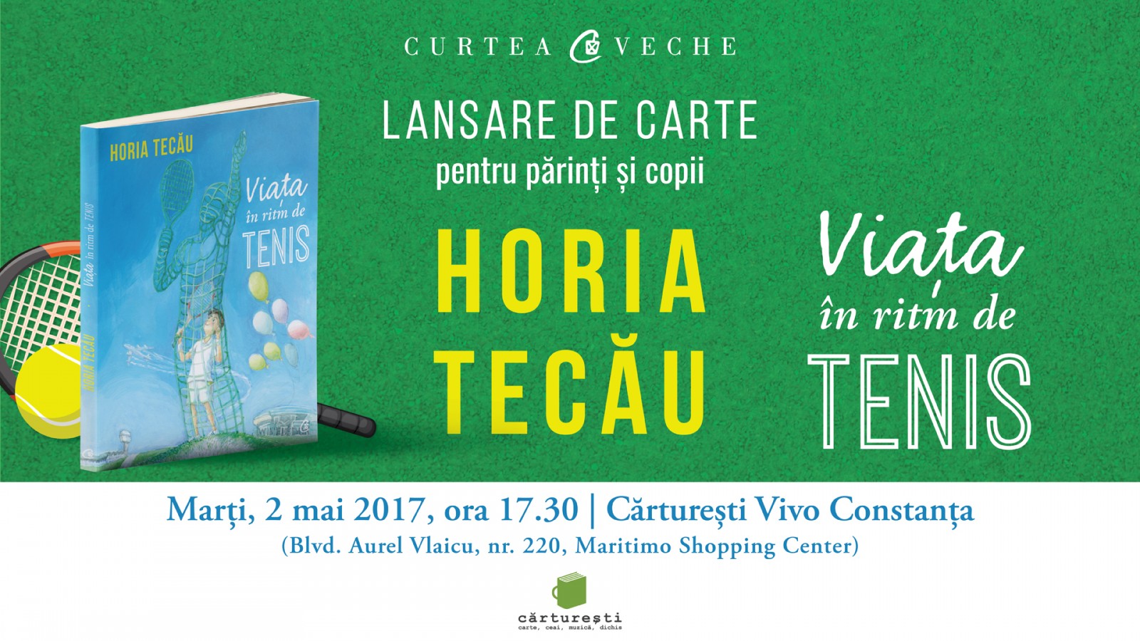 Celebrul tenismen Horia Tecău își va lansa cartea pentru copii în orașul natal în prezența unora dintre cei mai cunoscuți sportivi români – Cătălina Ponor, Elena Frîncu și Răzvan Florea. Curtea Veche Publishing și Librăria Cărturești Vivo Constanța îi invită marți, 2 mai 2017, deopotrivă pe cei mici și pe cei mari, la evenimentul de lansare a cărții “Viața în ritm de tenis”, carte în care Horia Tecău arată de ce este important să ne descoperim și să ne urmăm pasiunea încă de la cea mai fragedă vârstă.