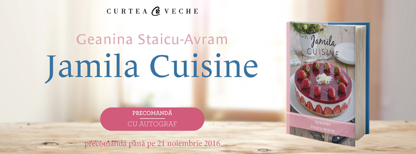 Curtea Veche Publishing pregătește una dintre cele mai așteptate cărți de bucate ale toamnei. Începând de astăzi, volumul “Jamila Cuisine”, semnat de Geanina Staicu-Avram, este disponibil pentru precomandă cu autograful autoarei până pe 21 noiembrie exclusiv pe site-ul editurii, www.curteaveche.ro. Cartea va fi lansată oficial printr-un eveniment în cadrul târgului de carte Gaudeamus.