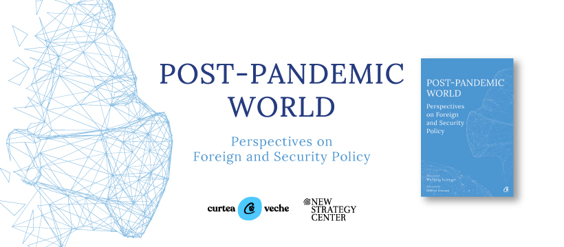 New Strategy Center și Curtea Veche Publishing lansează joi, 17 decembrie, între orele 16.00-17.30, cartea Post-Pandemic World. Perspectives on Foreign and Security Policy. Lansarea va fi în format online și va putea fi urmărită live pe www.newstrategycenter.ro și, de asemenea, pe site-ul de știri Calea Europeană, accesând www.caleaeuropeană.ro. Evenimentul va fi organizat sub forma unei dezbateri, moderate de ambasadorul Sergiu Celac și Dr. Olivia Toderean, doi dintre editorii acestui volum. Veți putea cunoaște opiniile despre efectele pandemiei asupra securității internaționale ale unora dintre autorii acestei cărți, care participă online la lansare, cum ar fi ambasadorul Sorin Ducaru, directorul Centrului Satelitar al UE șu președibte de onoare al Consiliului Științific al New Strategy Center, Dr. Antonia Colibășanu, analist al Geopolitical Futures, Dr. Charles Powell, director al ELCANO Royal Institute (Spania), Dr. Adam Eberhardt, director al Centre for Eastern Studies – OSW (Polonia), Dr. Harlan Ullman, senior advisor la Atlantic Council (SUA), Dr. Karsten Friis, director al Departamentului de Cercetare pentru Securitate și Apărare din cadrul Norwegian Institute of International Affairs (Norvegia).