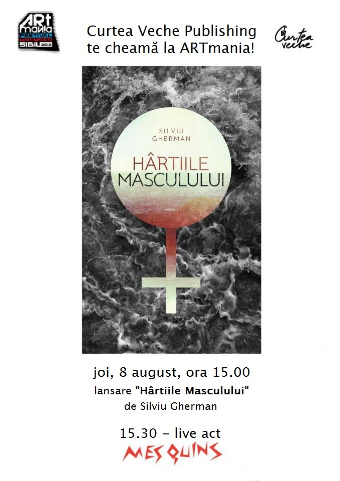 Joi, 8 august 2013, la ora 15.00, Curtea Veche Publishing îşi invită cititorii în Piaţa Mică din Sibiu, la festivalul ARTmania, unde va avea loc evenimentul de lansare a cărţii Hârtiile Masculului, de Silviu Gherman. Combinand ideea de cultural si neconventional, ARTmania si Curtea Veche Publishing invită amatorii de literatură şi performance muzical la evenimentul de prezentare a cărţii lui Silviu Gherman, unde cititorii îl vor putea cunoaşte atât în postură de scriitor, cât şi ca muzician, lansarea cărţii fiind urmată de concertul trupei Mes Quins, un duo electro-pop-punk fondat de Silviu Gherman şi Ovidiu Chihaia.