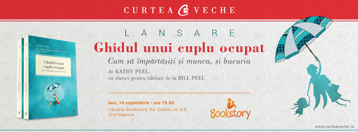 Curtea Veche Publishing și Librăria Independentă Bookstory lansează luni, 14 septembrie 2015, volumul „Ghidul unui cuplu ocupat. Cum să împărtășiți și munca, și bucuria” de Kathy Peel, cu sfaturi pentru bărbați de Bill Peel. Evenimentul va avea loc începând cu ora 19.00 la librăria Bookstory (Bd. Eroilor, nr. 6-8, Cluj-Napoca).