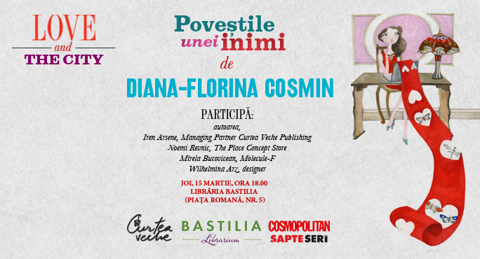 Găsirea şi păstrarea dragostei într-un oraş mare şi agitat pot fi uneori dificile. Vă invităm joi, 15 martie, să descoperim alături de cinci femei de succes care sunt obstacolele care marchează drumul în dragoste şi cum trebuie ele învinse. Prima care își va deschide sufletul va fi Diana-Florina Cosmin, autoarea volumului „Poveștile unei inimi”, recent publicat la editura Curtea Veche. Alături de Diana, vor împărtăși din poveștile lor Iren Arsene, Managing Partner la Curtea Veche Publishing, Noemi Revnic de la The Place Concept Store, Mirela Bucovicean de la Molecule-F şi Wilhelmina Arz, designer.