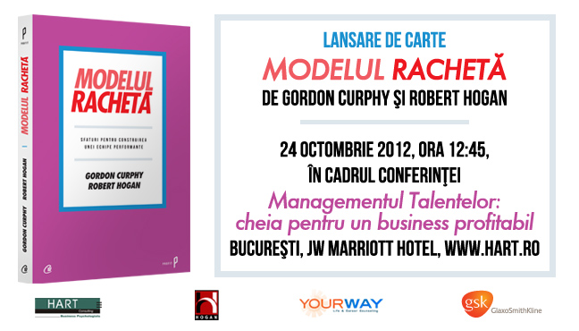 Curtea Veche Publishing va lansa volumul „Modelul Rachetă. Sfaturi pentru construirea unei echipe performante”, semnat de celebrul psiholog Robert Hogan alături de specialistul în leadership Gordon Curphy, în cadrul celei de-a V-a ediție a Conferinței HART HR Strategic, organizată de HART Consulting. Volumul este apărut cu sprijinul HART Consulting, partener autorizat al Hogan Assessment Systems în România şi Republica Moldova. Conferința va avea loc miercuri, 24 octombrie 2012, la Hotel J.W. Marriott din București, iar tema va fi Managementul talentelor: cheia pentru un business profitabil.