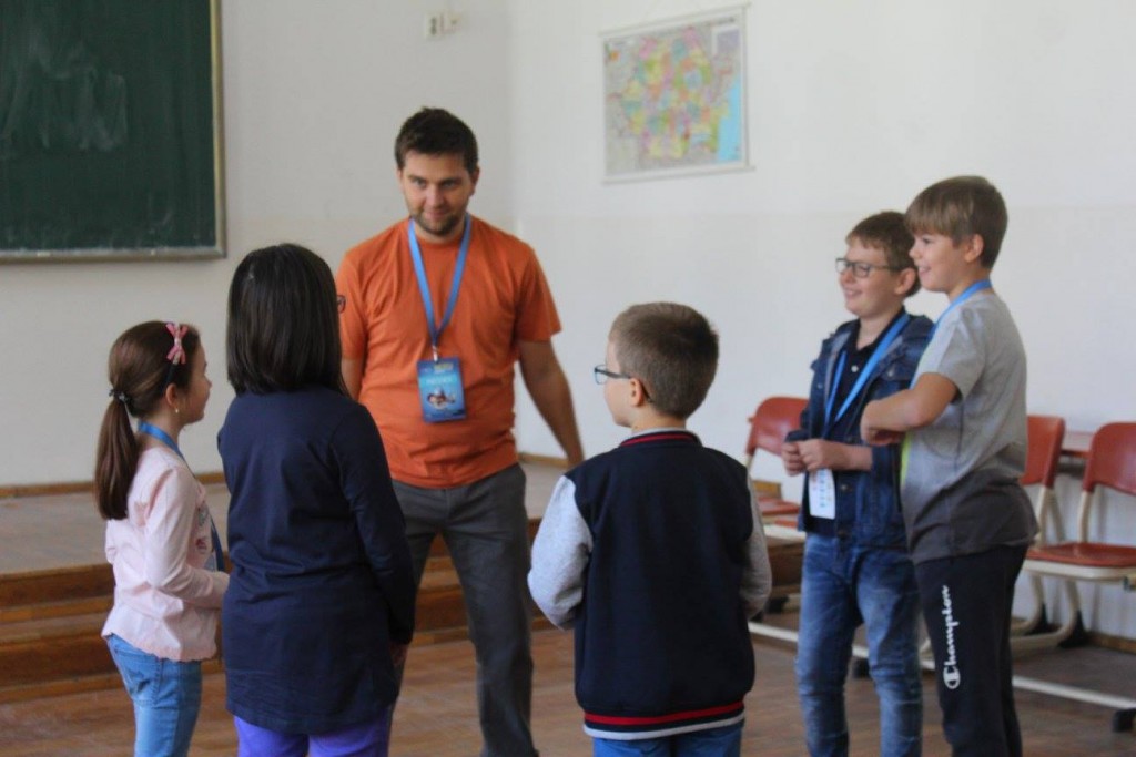 Am ajuns și în sala unde auzim pe cineva vorbind limba engleză: este David Hughes de la British Council Romania, cel care le-a arătat copiilor că o poveste nu este niciodată la fel, că în imaginația noastră stă puterea de a schimba firul evenimentelor.