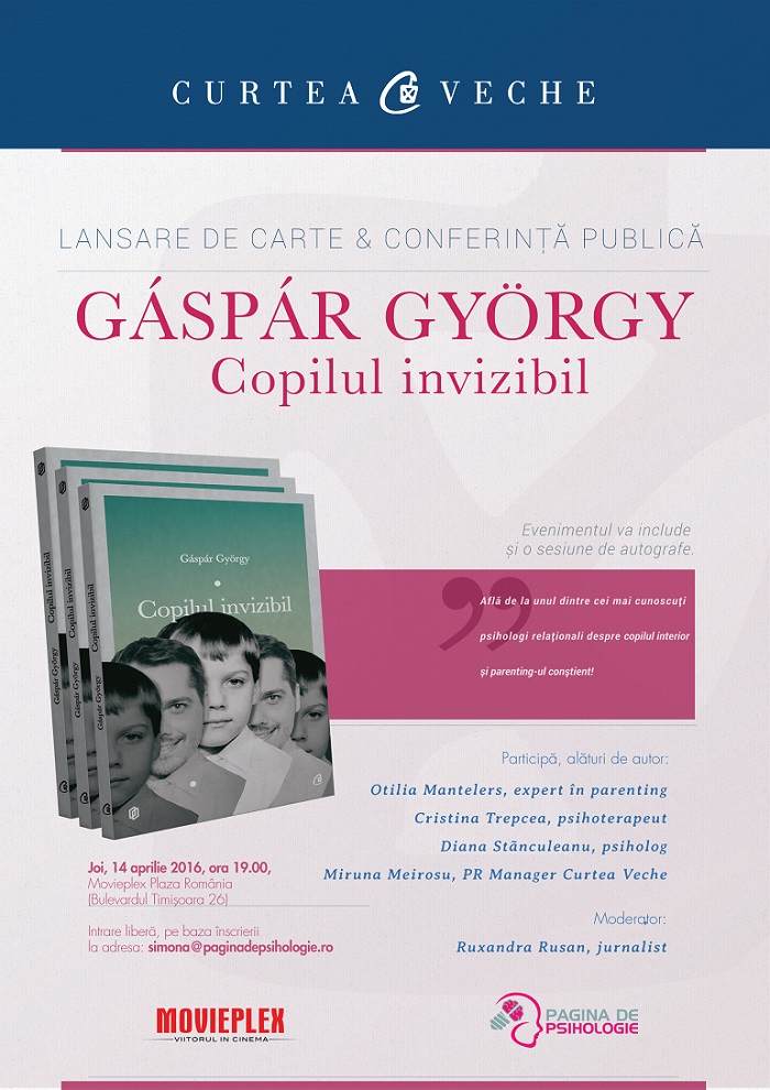 Unul dintre cei mai apreciați psihologi și psihoterapeuți relaționali din România, Gáspár György lansează la Curtea Veche Publishing „Copilul invizibil”, o carte menită să revoluționeze percepția despre metodele de parenting.