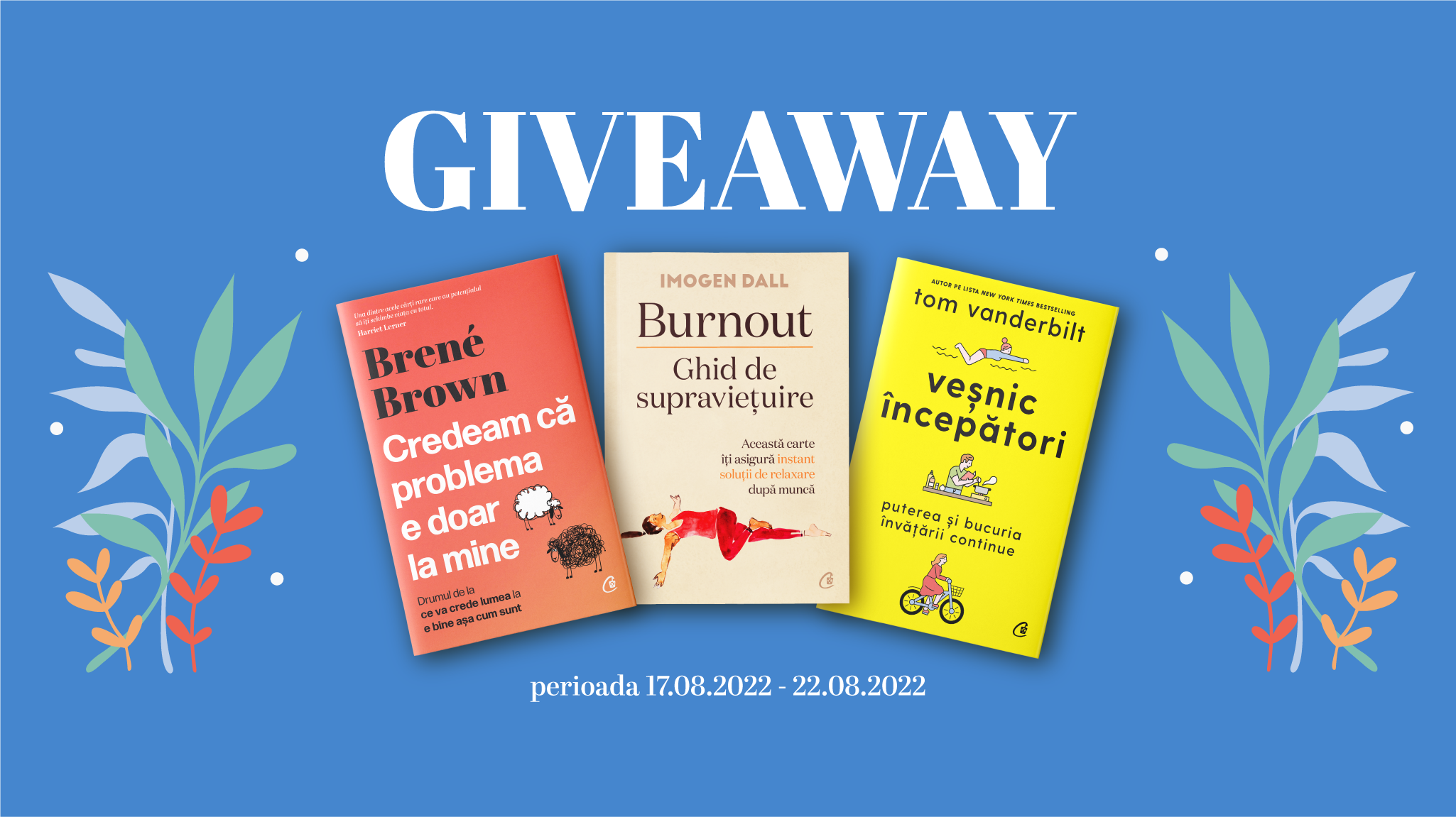 În cadrul Campaniei „Noutăți Biblioterapia.” se va trage la sorți 1 câștigător – și se va acorda 1 premiu, format din 3 cărți.