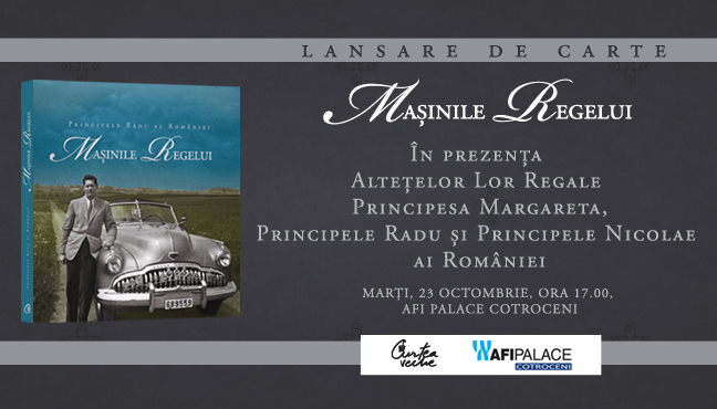 Lansarea volumului „Maşinile Regelui”, semnat de ASR Principele Radu, face parte din evenimentele regale din jurul aniversării zilei de naştere a Majestăţii Sale Regelui Mihai I al României. Marţi, 23 octombrie, începând cu ora 17.00, volumul  va fi prezentat publicului în prezenţa Alteţelor Lor Regale Principesa Margareta, Principele Radu şi Principele Nicolae ai României. La evenimentul ce va fi găzduit de AFI Palace Cotroceni (B-dul Vasile Milea nr. 4, parter, culoarul Champs-Élysées), vor lua cuvântul Sandra Gătejeanu, Director de Protocol al Casei Regale, şi Iren Arsene, Managing Partner Curtea Veche Publishing. Seria evenimentelor dedicate acestui volum a fost deschisă pe 28 septembrie la Muzeul Naţional de Istorie din Bucureşti, continuând cu lansările de la Iaşi (1 octombrie) şi Oradea (12 octombrie).