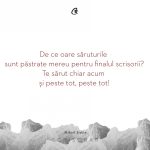 Nici soarele nu mai zâmbeşte, sta ascuns între norii cenuşii; nici florile nu mai înfloresc, stau ghemuite în aşteptarea ta. Nu-mi mai găsesc liniştea şi-mi pare rău că n-am ştiut cât de mult însemni în viaţa mea. Aş vrea să pot înţelege lumea asta în care ne ducem zilele. Atâtea nedreptăţi în faţa cărora suntem atât de neputincioşi! Tu ai înţeles rostul lucrurilor? Eşti împăcat cu ce s-a întâmplat? Eşti revoltat, sau poate ai obosit de atâta luptă. Cred că ştii deja că adorm mereu cu gândul la tine, întrebându-mă ce faci, dacă eşti bine, dacă nu m-ai uitat, dacă eşti supărat pe mine, dacă te mai pot ajuta cumva. Dimineaţa mă trezesc cu răspunsurile acestor întrebări, dar ele dispar imediat în tumultul fiecărei zile.