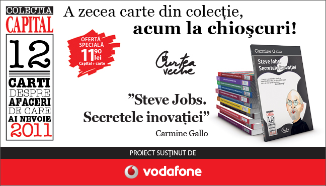 Cu toţii aţi auzit despre Steve Jobs şi contribuţia lui la dezvoltarea omenirii. Ecourile carierei sale şi secretele care l-au împins întotdeauna mai departe, mai sus, încearcă să devină acum modele pentru un public din ce în ce mai numeros, cu idei şi iniţiative. Volumul Steve Jobs. Secretele inovaţiei de Carmine Gallo se găseşte începând de astăzi împreună cu Revista Capital, şi va concretiza multe dintre principiile care l-au ghidat pe Steve Jobs în a-şi urma pasiunile, a avea curaj să încerce lucruri diferite şi a rămâne o personalitate de succes, constant preocupată de progres şi noutate.