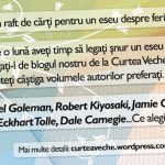 Pentru că vrem ca, peste fix o lună, să vă facem fericiţi, vă propunem să scrieţi pe blogul vostru un eseu despre fericire. Puteţi să porniţi de la studiul lui Daniel Gilbert, „În căutarea fericirii”, din colecţia „Biblioterapia” de la Curtea Veche. Câteva idei vi le vor oferi, poate, şi Yongey Mingyur Rinpoche & Eric Swanson prin a lor „Bucurie de a trăi”, despre „Descifrarea secretului şi a ştiinţei fericirii”.