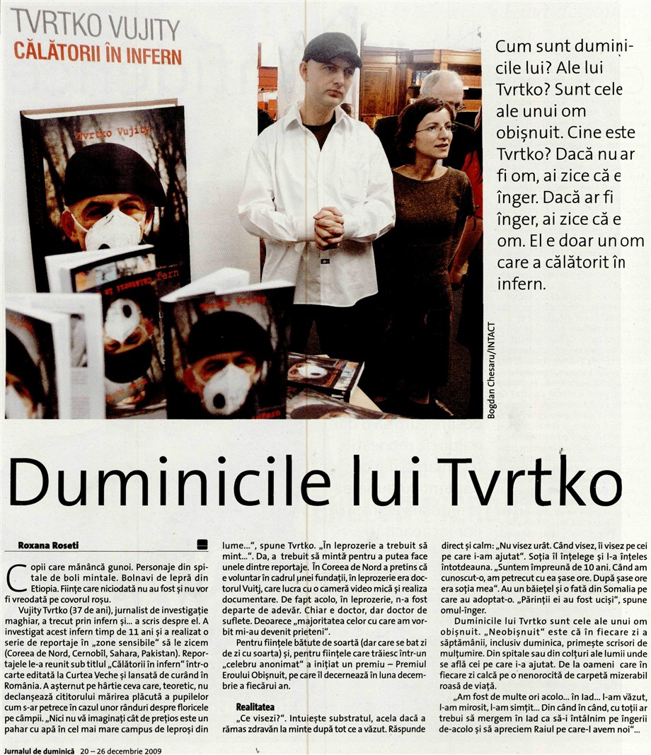 Ne-am intalnit in fata ambasadei Ungariei la Bucuresti. Tvrtko e faimos la Budapesta, dar in Romania nu-l cunoaste nimeni. Ne-am asezat la o masa sa mancam. Deasupra, pe ecranul unui televizor, curgea un talk-show la care participau Bogdan Chireac si Sorin Rosca Stanescu. Noi am inceput sa discutam despre jurnalism, apoi despre calatoriile lui in locuri imposibile. Abia puteam sa-l privesc in ochi. Desi are o figura adolescentina, ochii jurnalistului maghiar sunt foarte batrani. Si al naibii de tristi. A vazut multe omul asta. Poate prea multe…