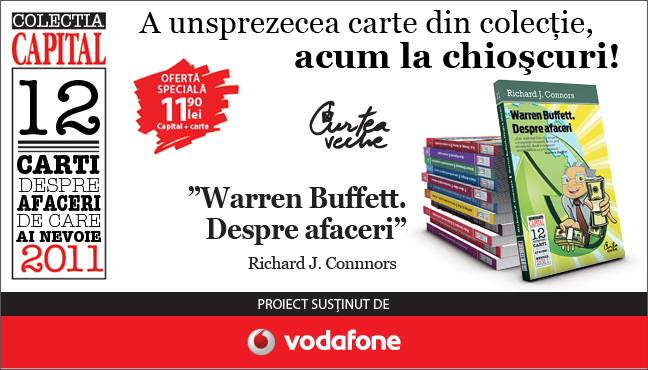ÎNCEPÂND CU 29 NOIEMBRIE, LA TOATE CHIOŞCURILE DE ZIARE, veţi putea găsi volumul WARREN BUFFETT.DESPRE AFACERI destinat cititorilor de cărţi business, ce poate fi cumpărat numai împreună cu revista Capital. În trecut, numele lui Warren Buffett a apărut pe lista celor mai bogaţi oameni din lume, devenind sinonim al succesului în afaceri. Succes la baza căruia stau, în principal, investiţiile inspirate.